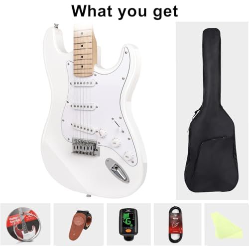 Bullfighter 初心者向けエレキギターセット 男の子 女の子 学生 大人向けのユニバーサルモデル プロフェッショナルなエントリーレベルの電子ギター楽器 ST Electric Guitar MS 100 SSS white po 2 cc 45 f 04