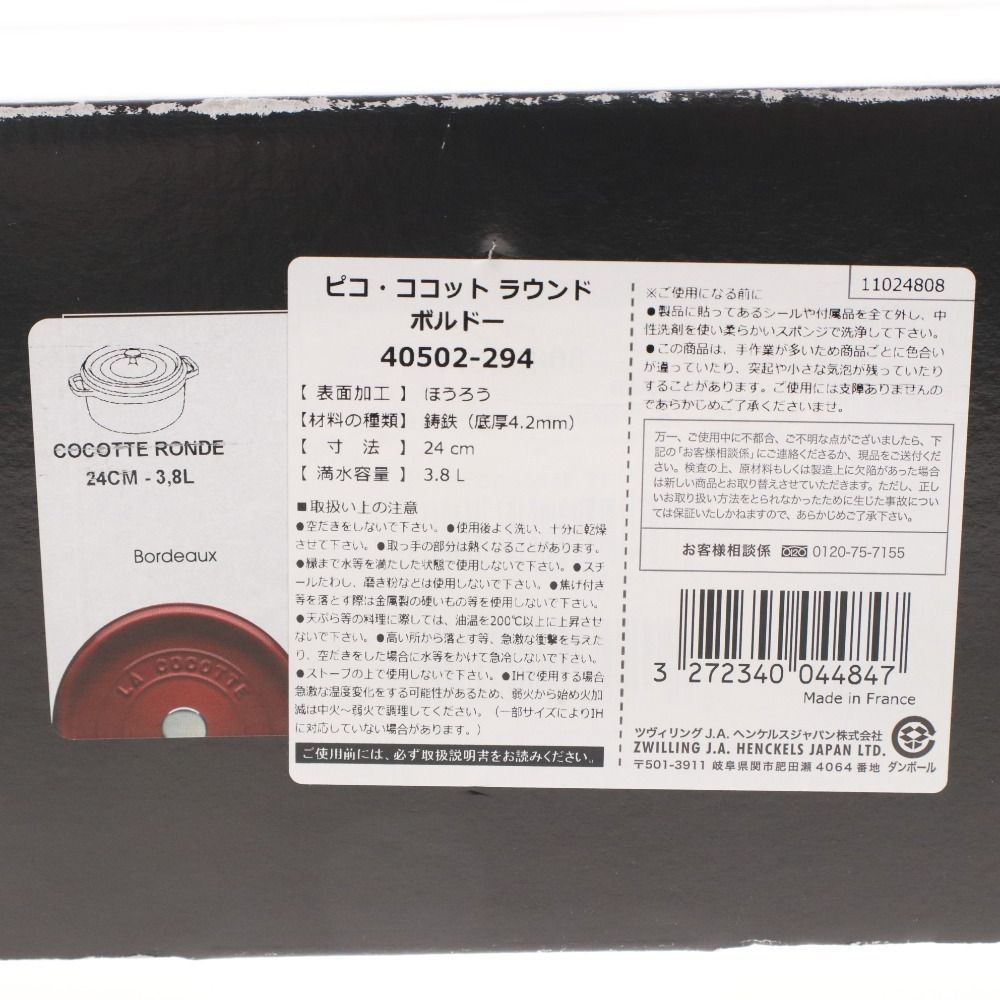 Staub ストウブ 鍋 ピコ・ココット ラウンド ボルドー 40502-294 3.8L 調理器具 両手鍋 箱付き 未使用