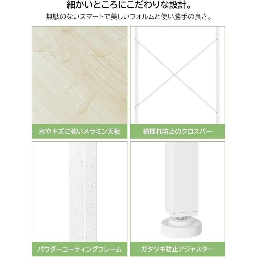 (1)水やキズに強いメラミン天板、水をこぼしても、サッと拭き取るだけでOK。お手入れもカンタンです。