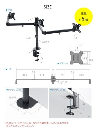 イーサプライ モニターアーム 3画面 トリプル 横並び 15 27インチ目安 耐荷重各8 kg クランプ式 グロメット式 左右 前後 縦画面 ケーブル収納 VESA EEX d 452 b 635