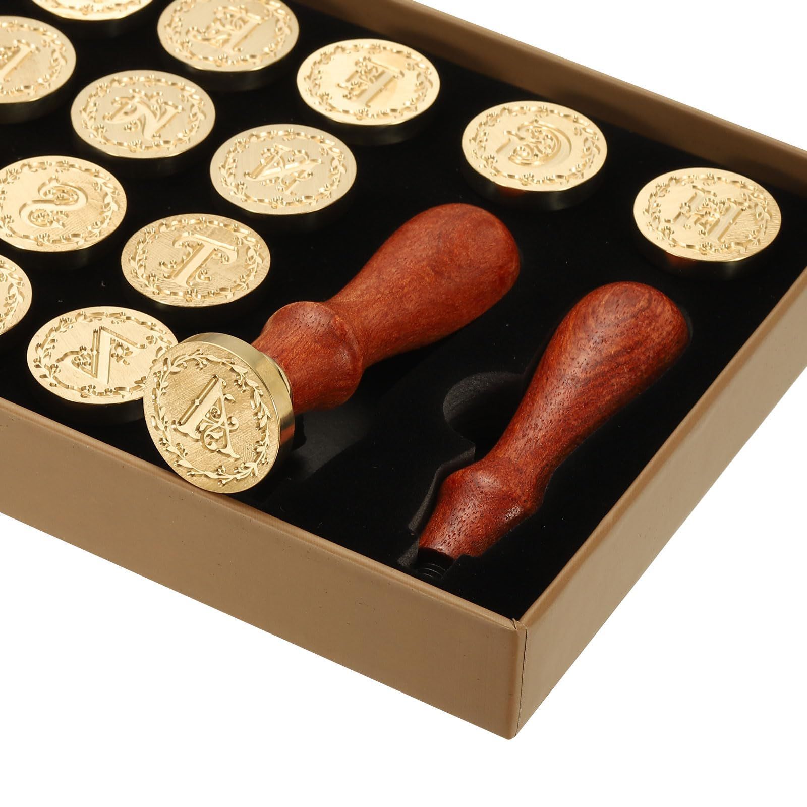 ヴィンテージ封印スタンプ 木製ハンドル付きギフトボックス付き ウェディング招待状 パーティー ギフト包装 26文字A Zアルファベットワックスシールスタンプキット 封筒カード用 PATIKIL スタイル3