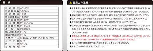 定格電圧:AC100V、定格周波数:50/60Hz、定格電流:10.3A、定格消費電力:1,000W、吸込仕事率:約140W