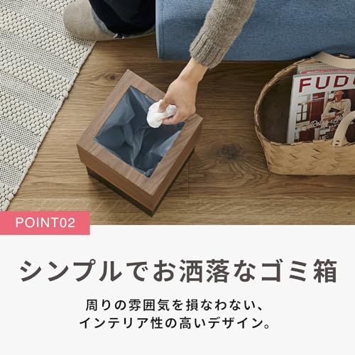 モダン機能性。シンプルでおしゃれなゴミ箱。 周りの雰囲気を損なわない、インテリア性の高いデザイン。 美しい木目が、あたたかみのあるコーディネートにマッチします。