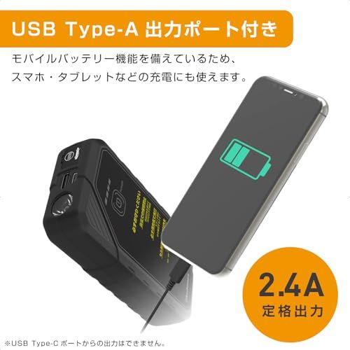 カシムラ メーカーき エンジンジャンプスターター 6400 mAhの大容量 12 V車用 ガソリン 4 0 L ディーゼル 2 L対応 機能搭載 LEDライト付 KD 281