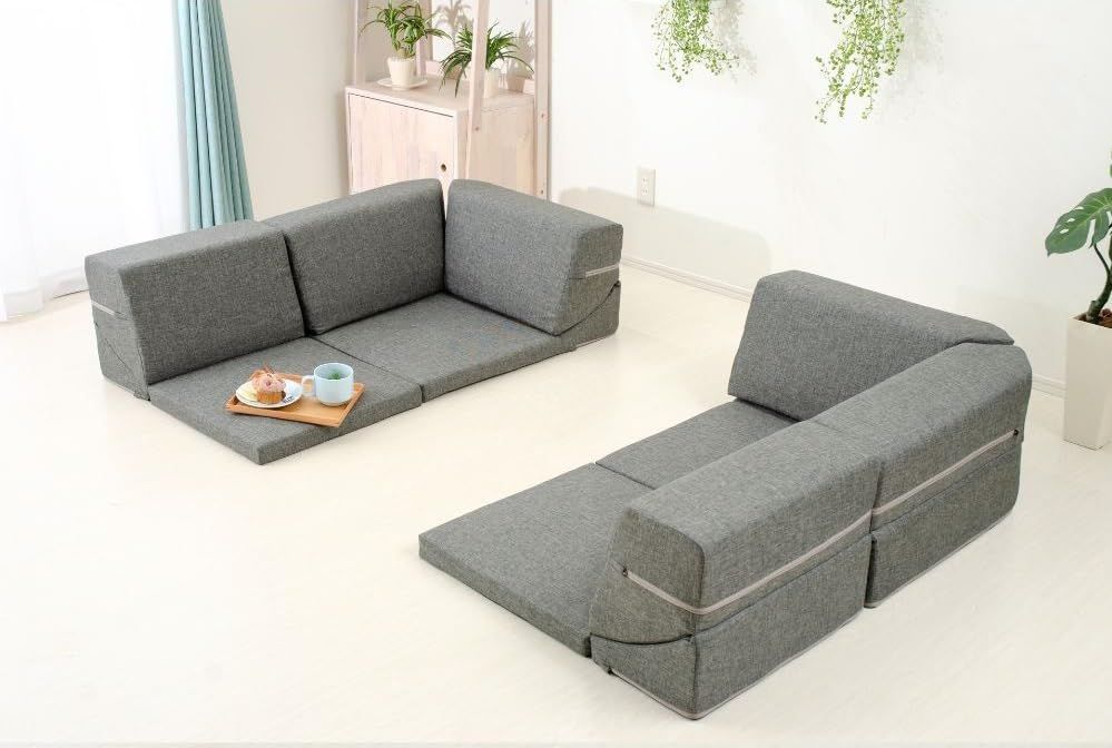 アッシュグレー コーナーも倒せる 4点セット ダブルコーナー ローソファ セルタン Cellutane A 1132 606 GRY