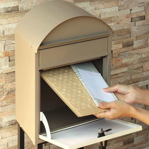 迅速に発送 スタンドポスト Simon ミルクティーベージュ|ホワイト木目 SDM-071 ポスト 郵便ポスト メールボックス おしゃれ 郵便受け 宅配ボックス 北欧風 鍵付き 自立 スタンド コンパクト 玄関 家庭用 fb 041 cab