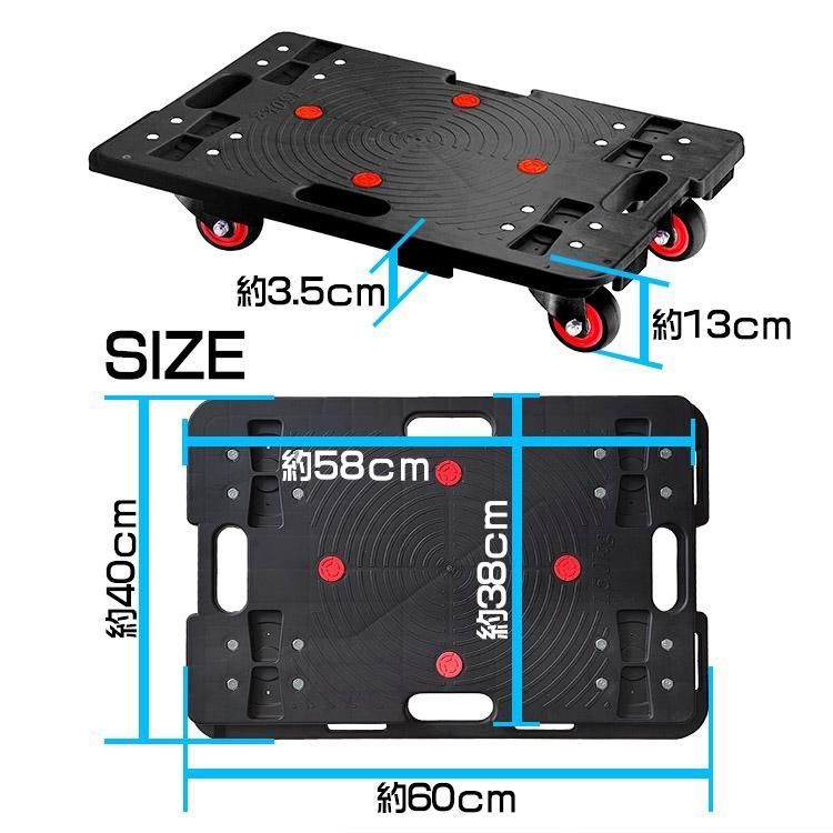 ■台車サイズ:約幅40×奥行き60×高さ13cm、重量:約4kg/台。
