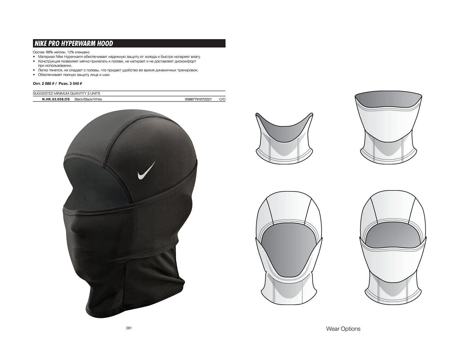 Unisex Dri Fit Balaclava Hood Techlonogy Hydropull Hyperwarm Black PRO Nike