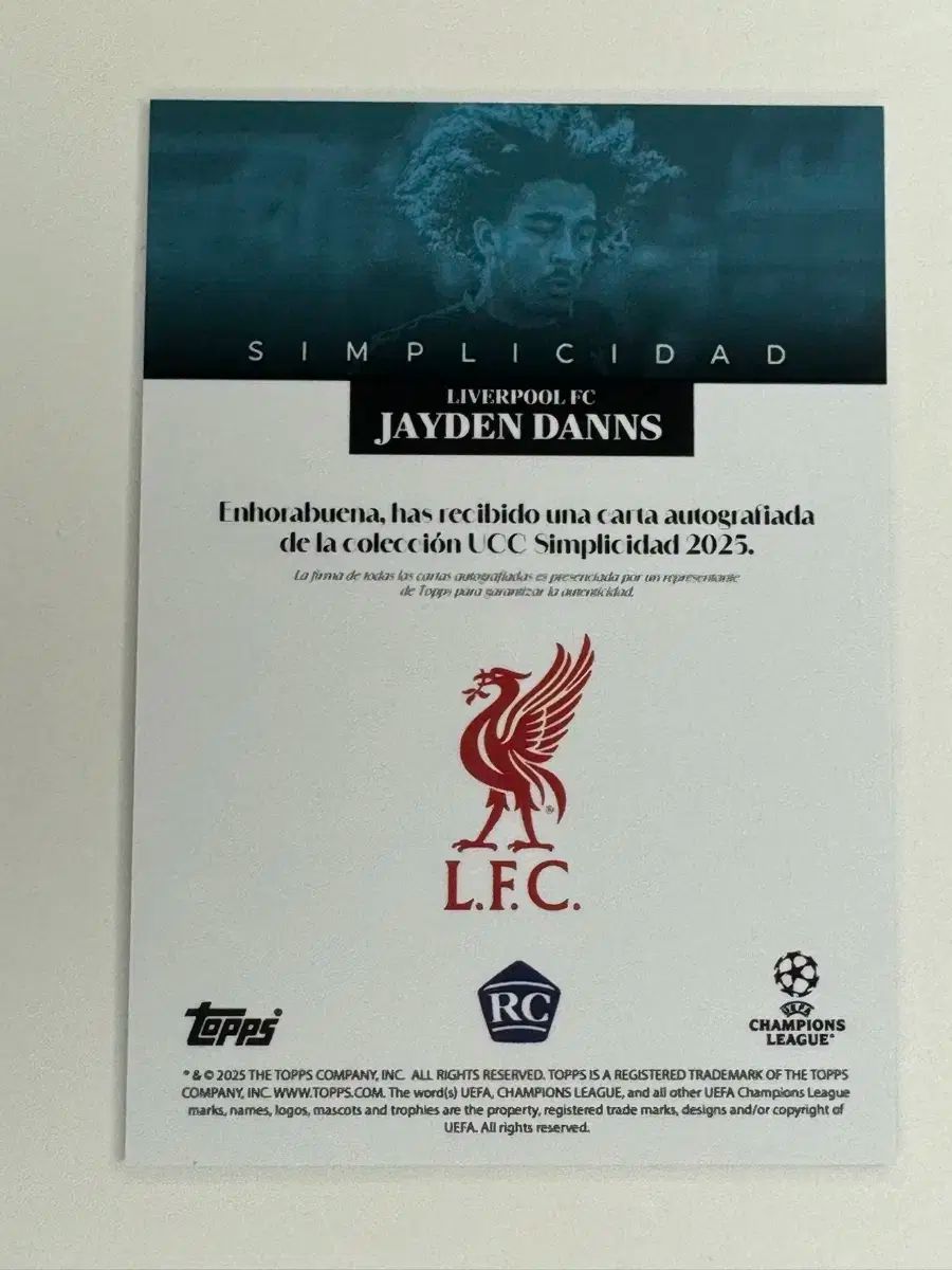 これはリバプールFCの選手、ジェイデン・デーンズがサインしたToppsカードです。これはRCカードで、30/49の番号が付いているため、収集価値が高いです。プレイヤーのフィクシングユニホームが入っているので、さらに特別なものになります。購入したい場合は、すぐに安全な支払いを行ってください!
