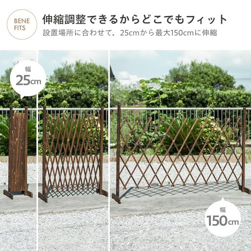 【置くだけで完成!工事不要の自立式】 お庭や玄関の目隠し、リビングの間仕切りに。約3kgの程よい安定感がある重量と自立式の脚で、届いたらすぐに置くだけで設置できます。アコーディオンのように幅150cmまで伸縮し、使わない時はコンパクトに収納可能です。