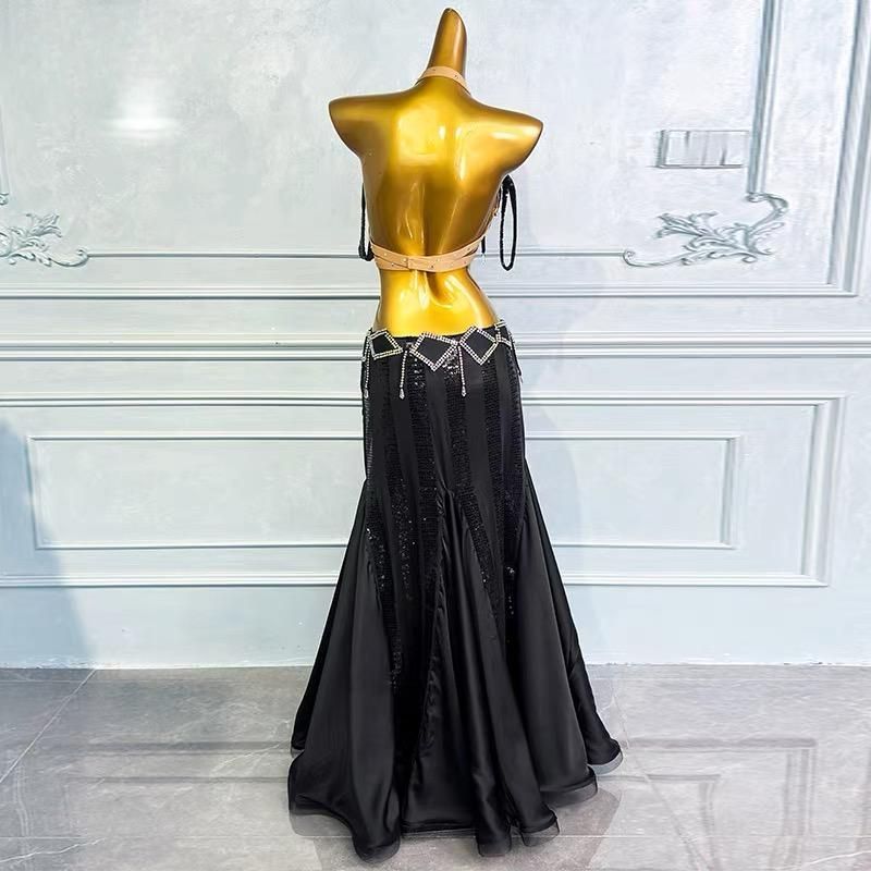 ベリーダンス オリエンタル衣装 刺繍 ブラ スカート オーダーメイド ステージ衣装 ブラック