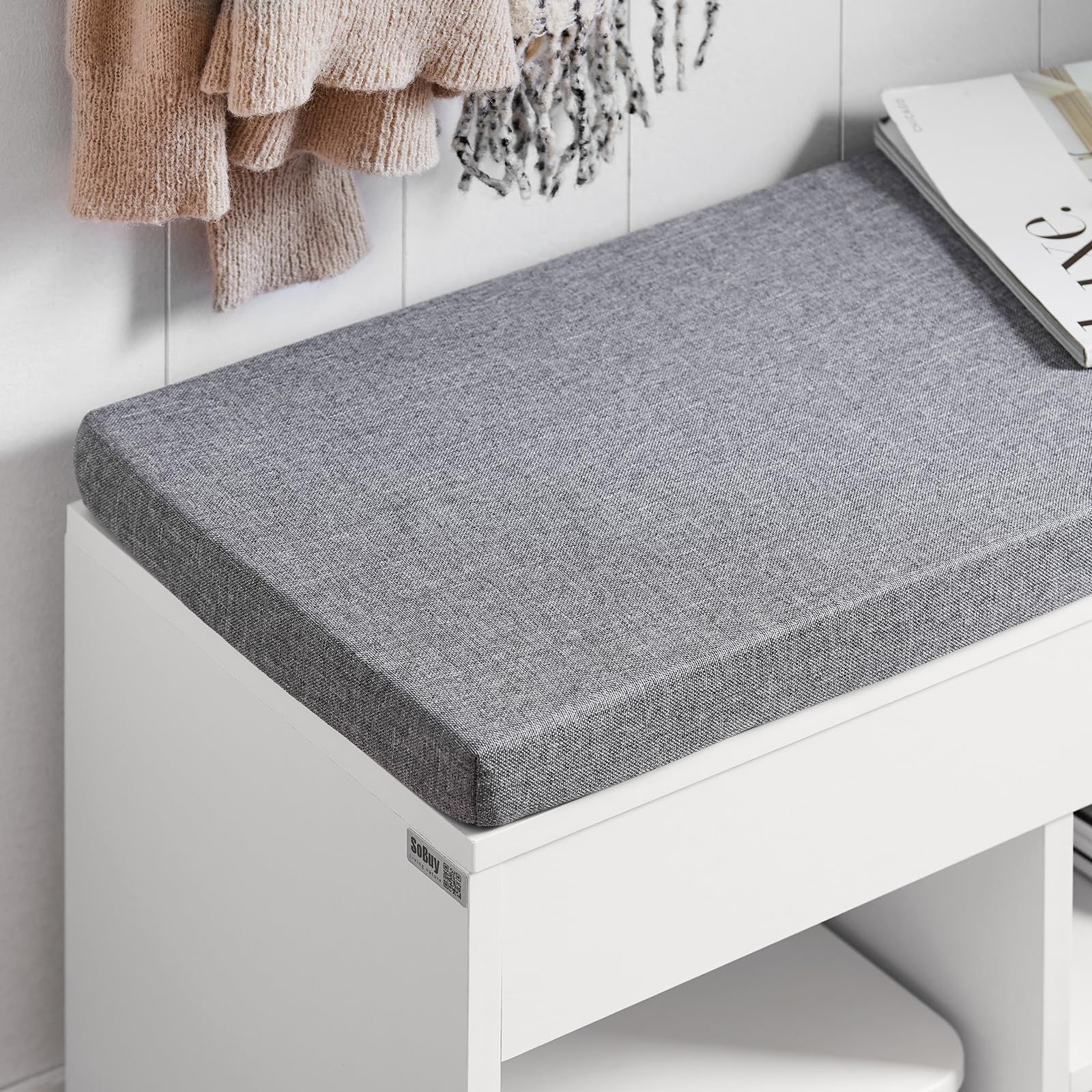 SoBuy 玄関ベンチ シューズラック 収納ベンチ スリム 下駄箱 靴箱 収納 幅80×奥行30×高さ47.5cm 小物収納 シューズベンチ 玄関収納 靴収納 玄関椅子 玄関 腰掛け ベンチ 靴棚 スツール 靴入れ(FSR45-HG/ホワイト)