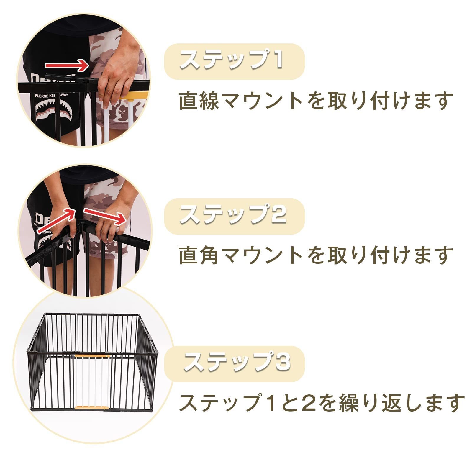 大型 ペットフェンス サークル サークルケージ 犬 大型犬用ゲージ 幅168 奥行84 高70 cm 室内 ドア付き 中型犬 組み立て簡単 ゲージ ペットサークル 工具不要 168 84 70 ブラック Shinyever