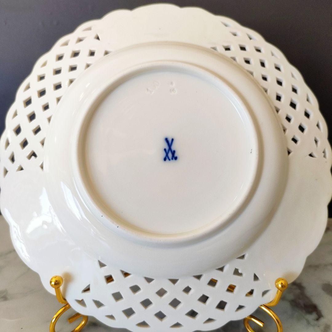 MEISSEN マイセン 1級品 フラワーブーケ 昆虫 金彩 透かし オープンワーク プレート 20 5 cm ピアスエッジ