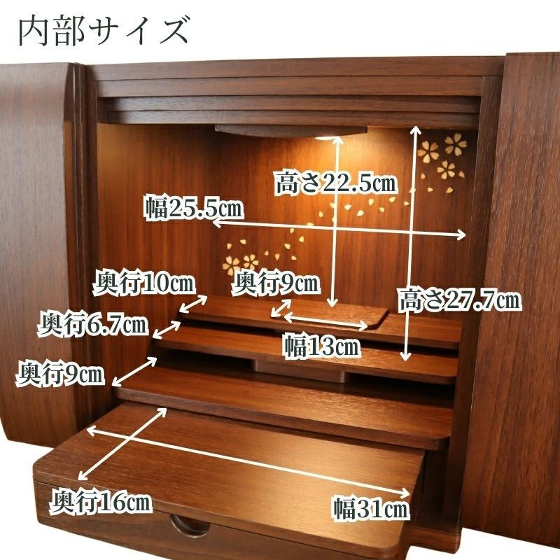 上置きモダン仏壇 14号 プラム 桜模様 ウォールナット調 奥行き29 5 cm上置き仏壇 モダン仏壇 小さい コンパクト 小型仏壇 お仏壇 おしゃれ シンプル 小型 家具調 デザイン 耐久性 お彼岸 お盆 迎え火