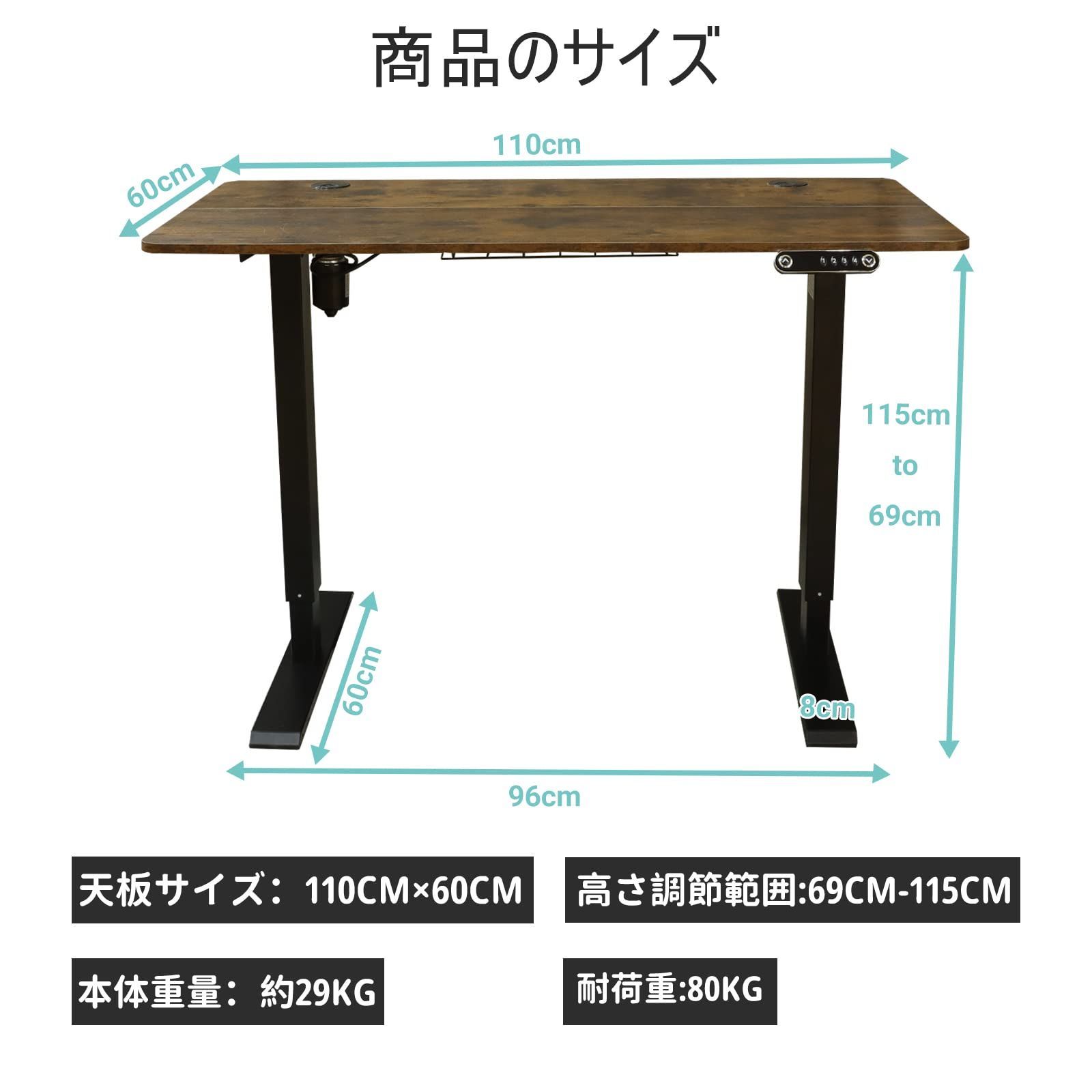 電動昇降式スタンディングデスク パソコンラック 机 PCデスク ゲーミングデスク つくえ パソコンデスク 高さ調節 高さ調節メモリー機能付き 電動式 幅110 CM 奥行60 デスク 高さ 69 115 Radlove ブラウン