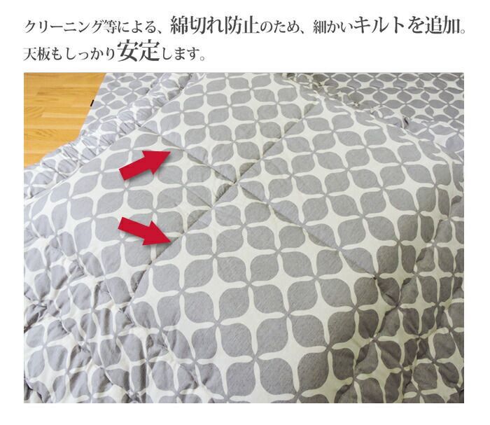 厚掛けタイプの掛け布団は、こたつ内の熱を逃がさず、暖かです。