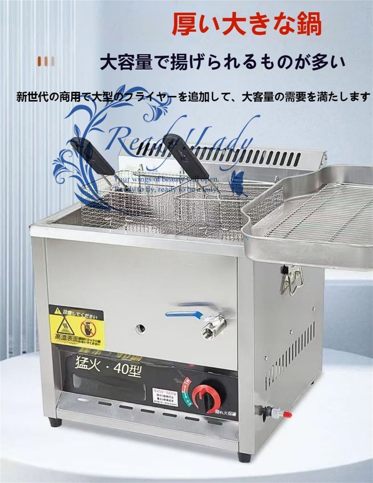 高品質の素材:私たちのガスフライヤー業務用 肥厚鋼板、高速予熱、長い時間の使用は悪くない、フライドチキン、フライドポテト、エビフライ、フライドチキンの脚、クリスピーコーン、全体のステンレス鋼、多層複合技術ブラシをかけ、ステンレス鋼、304ステンレス鋼の内側の層、厚く絶縁層、滑らか、腐食、高温、さびに容易ではないことです。