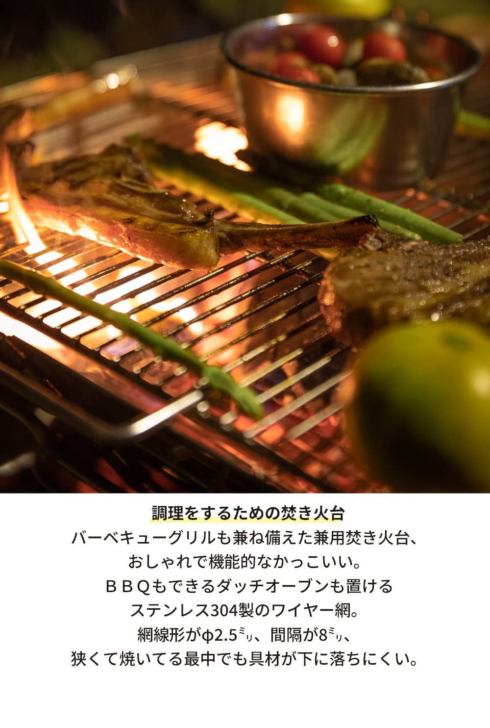 材質:焼き網/SUS304、本体材質/SUS430、収納ケース/帆布