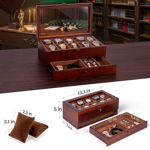 JoyHood 腕時計ケース 10本 2段式 木製時計収納ボックス 男性 女性 腕時計&ジュエリー 収納ボックス 引き出しとアクリル蓋付き 小物整理プレゼント アクセサリー収納 399 cdabb