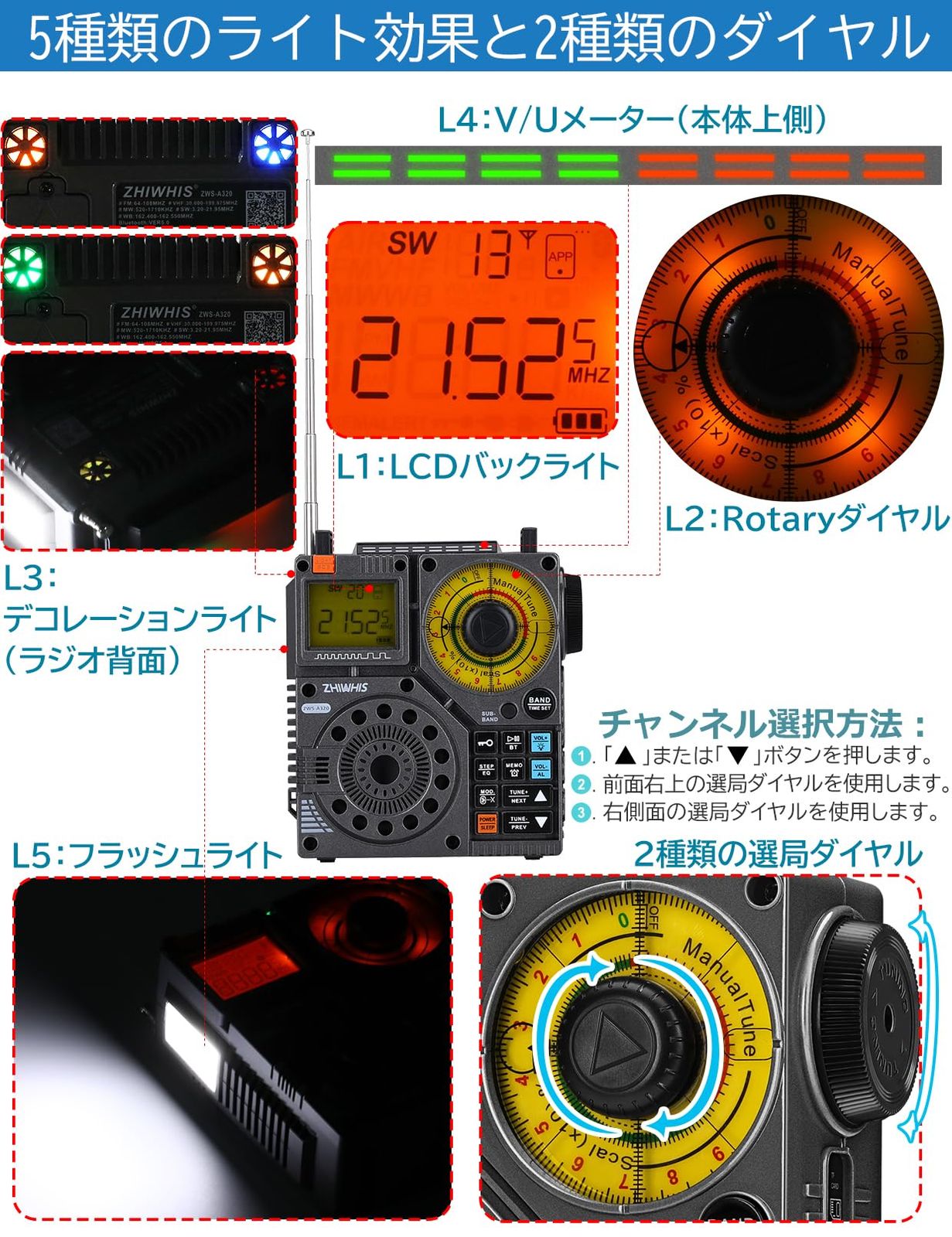 ZHIWHIS Bluetoothスピーカー BCLラジオ 短波受信機 VHF FM AM SW ワイドFM 懐中電灯 録音 APPコントロール MicroSDカード対応 20時間連続再生 タイマー USB C充電式 技適取得済 防災アウトドア2025新