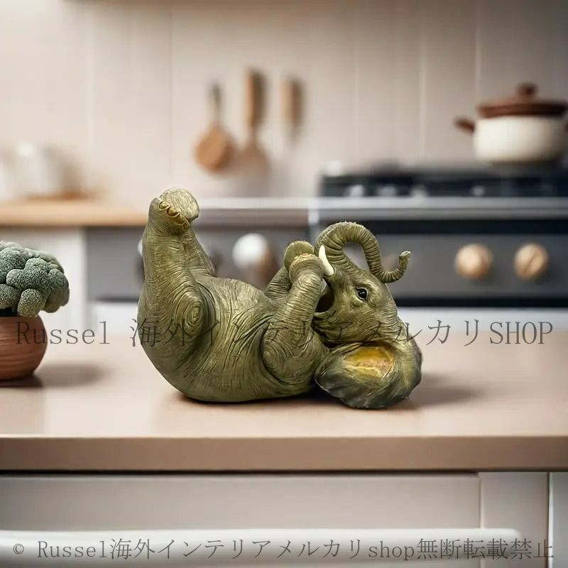 Russel海外インテリア、メルカリshop店のリアルなデザインが魅力の象のワインラック。寝転んでいるゾウの姿はユニークで、どんなお部屋にも遊び心をプラスする存在です。特に飲み会や特別な日を演出するアイテムとして、あなたのワインセレクションを華やかに引き立てます。手作りの精巧な造形が、見る人に喜びを与え、会話のきっかけにもなることでしょう。