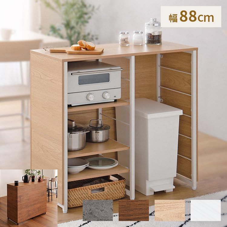 グランテイスト キッチンカウンターテーブル キッチンラック ゴミ箱上ラック キッチン収納 ゴミ箱収納 間仕切り 幅88cm ウォールナット 木目あり KC-90-WAL