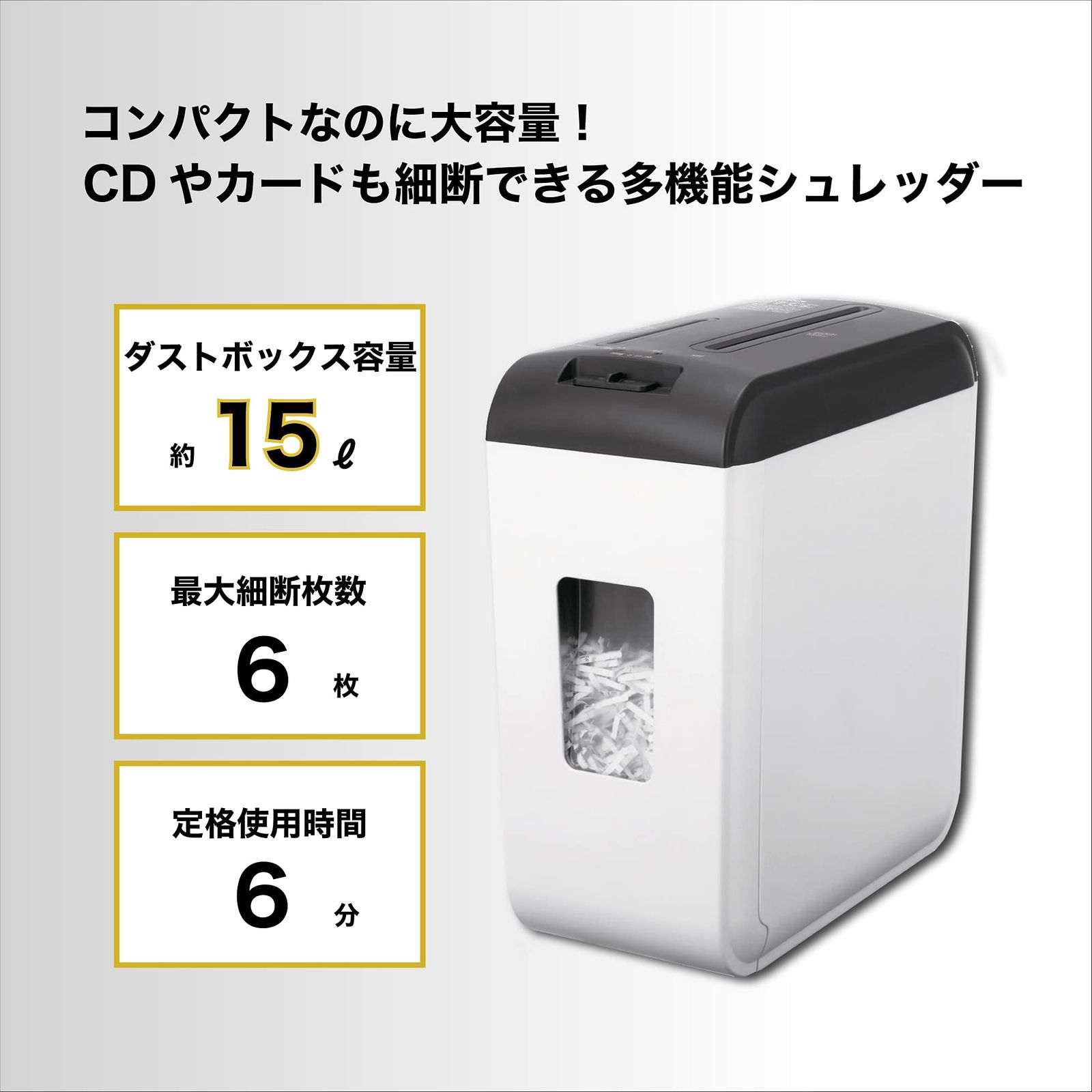 ダストボックス容量は約15?とコンパクトながらA4コピー紙が約220収容できる大容量シュレッダー