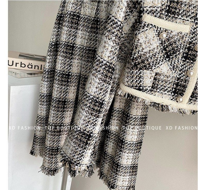 華やか チェックツイード ジャケット&ひざ下スカート