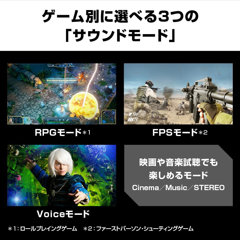 低音・音圧の強化と定位感を改善させ、ゲームフィールドへのさらなる没入感※1を実現