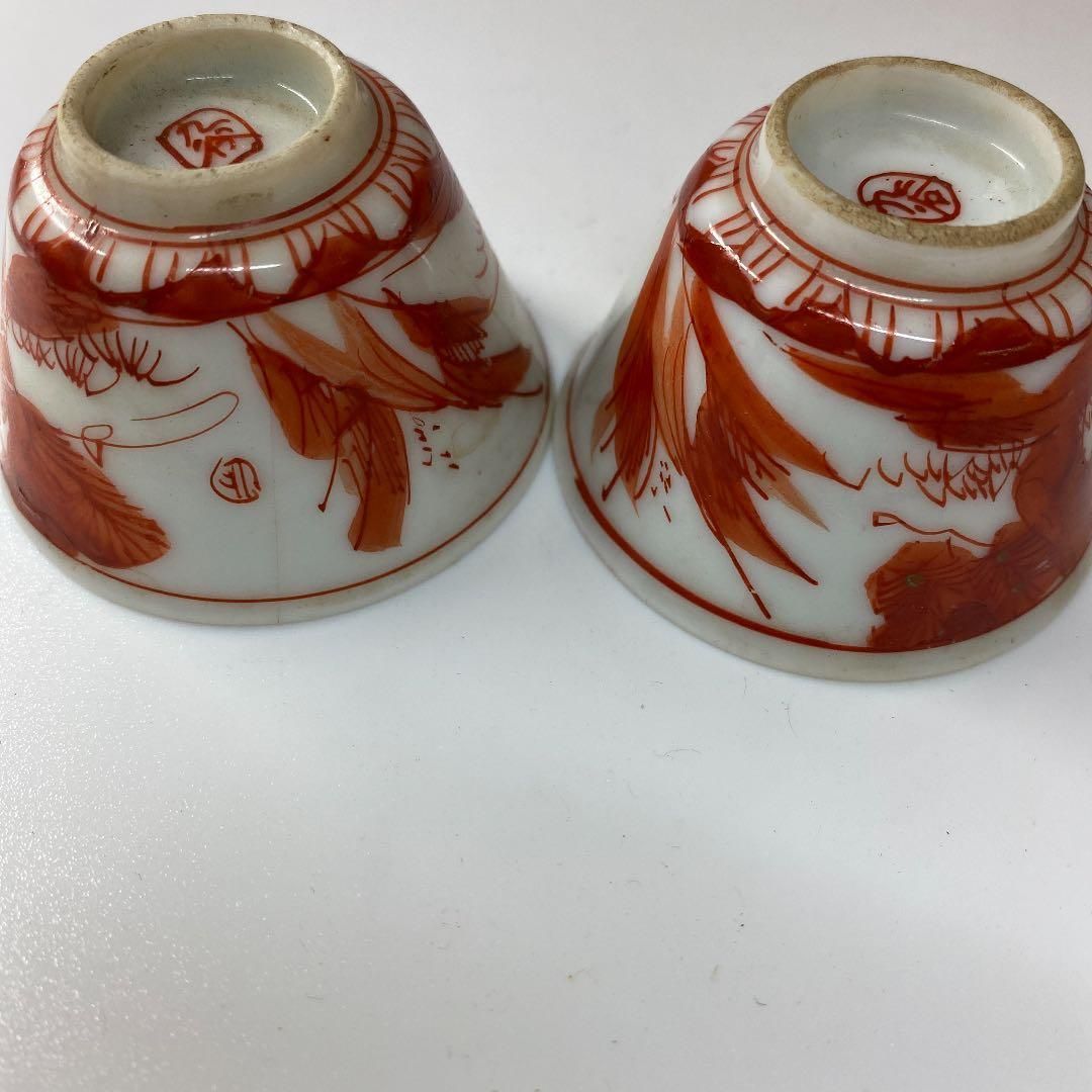 時代 九谷焼 犬山焼 赤絵盃9客セット 直径5 4 6㎝ 蓋無木