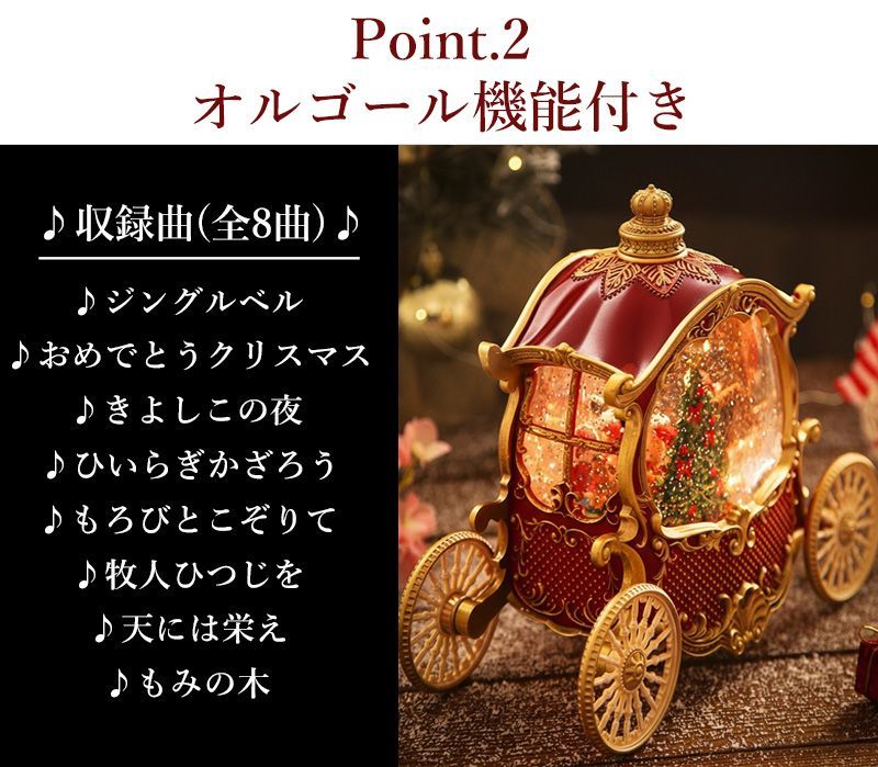 煌びやかなゴールドの装飾と深紅のボディが目を引くクラシカルなデザインで、クリスマスシーズンのインテリアにぴったりです。