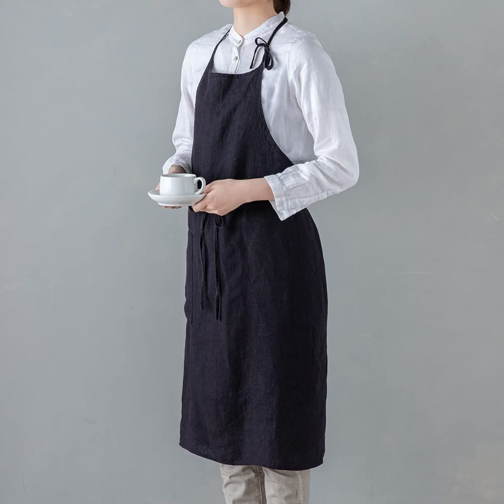 Lino e Lina リーノエリーナ エプロン フルエプロン ミラ Mila A 357 ノワール ブラック レディース メンズ キッチン 無地 リネン 麻 シンプル ロング丈 ギフト プレゼント
