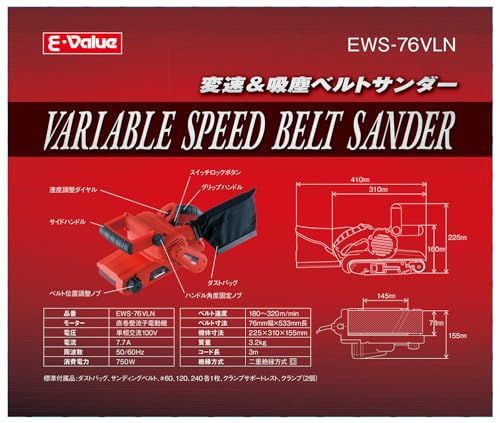 迅速に発送 イーバリュー E-Value 吸塵-変速ベルトサンダー ベルトサイズ 76 mm× 533 mm EWS-76 VLN 63 a 3 acf 9