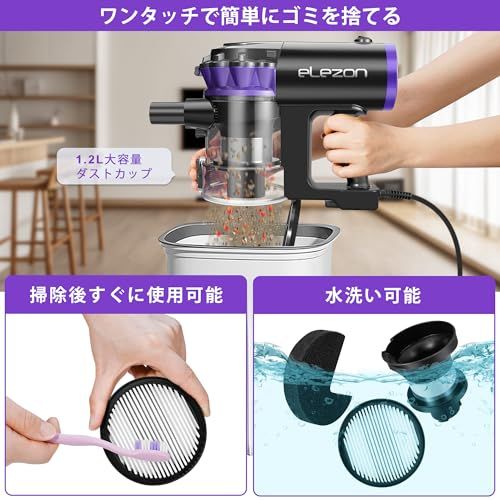 elezon 掃除機 F 800 コード式 マルチサイクロン パワフル 18000 Pa 強力吸引1.2 L 大容量ダストカップ 掃除 機 スティッククリーナー 軽量 コード付き そうじき コンパクト 紙パック不要 パープル 586 c 4436