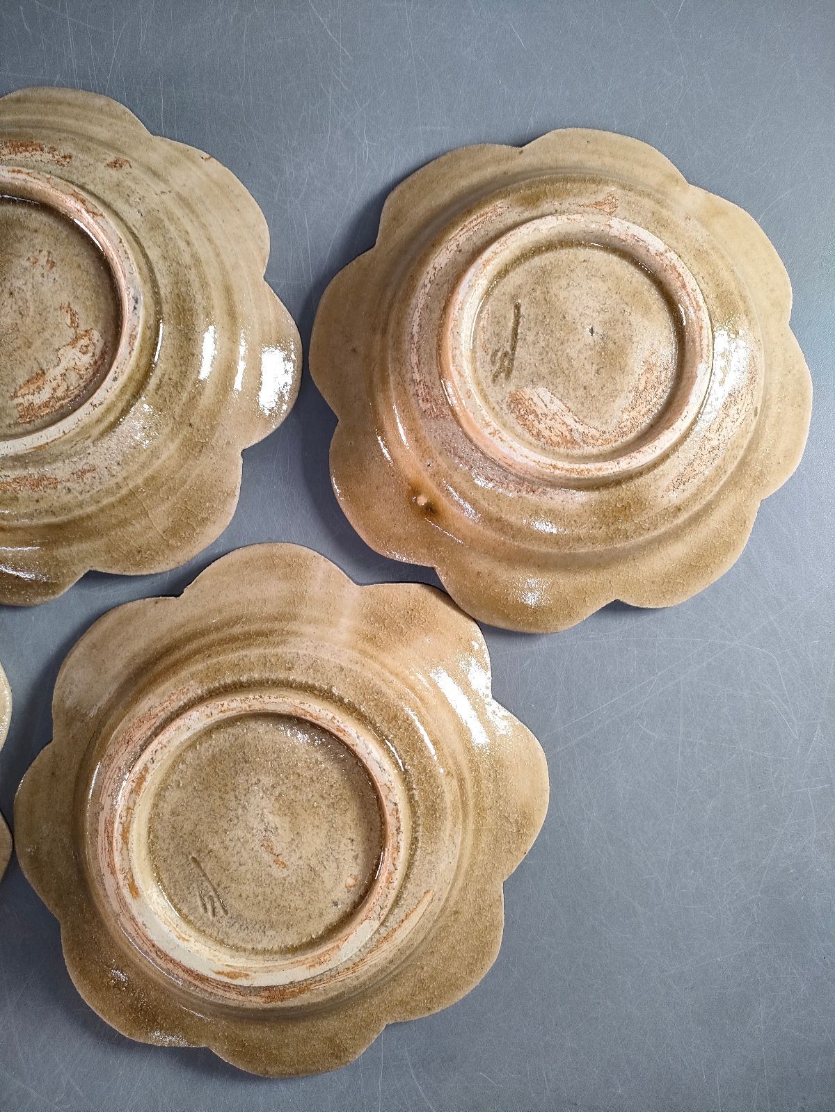 S 10 1 紅日苑窯 小野恵子 黄瀬戸蜂文向付4客 菊文向付2客 織部向付3客