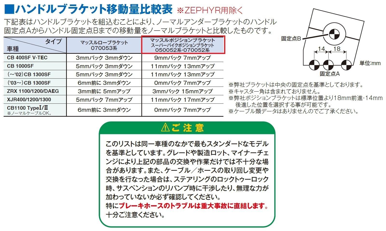 マッスルポジションブラケットは極太クランプ幅約24mmを採用!圧倒的な剛性感で、ハンドルをガッチリ固定。ストリートモンスターにふさわしいライディングポジションを実現します。