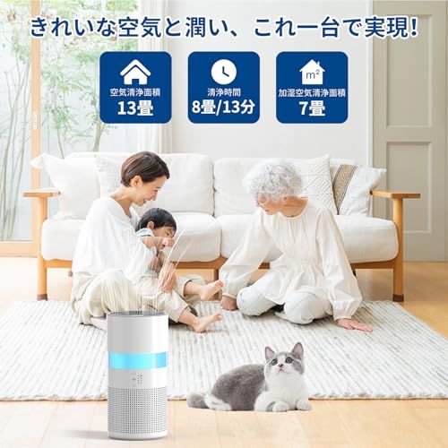 加湿器付き 空気清浄機 小型 12畳 脱臭 卓上 アロマ対応 集じん hepa フィルター 花粉 ペット 除菌 ライト付き 静音 省エネ ホコリ PM 2 5 ウィルス アレルギー対策 ホワイト Demi Pro b 704 a f 6