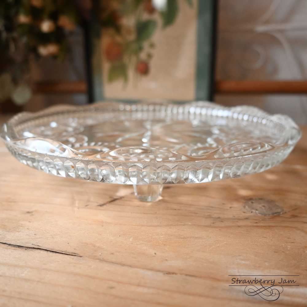 アンティークガラスのケーキスタンドになります。