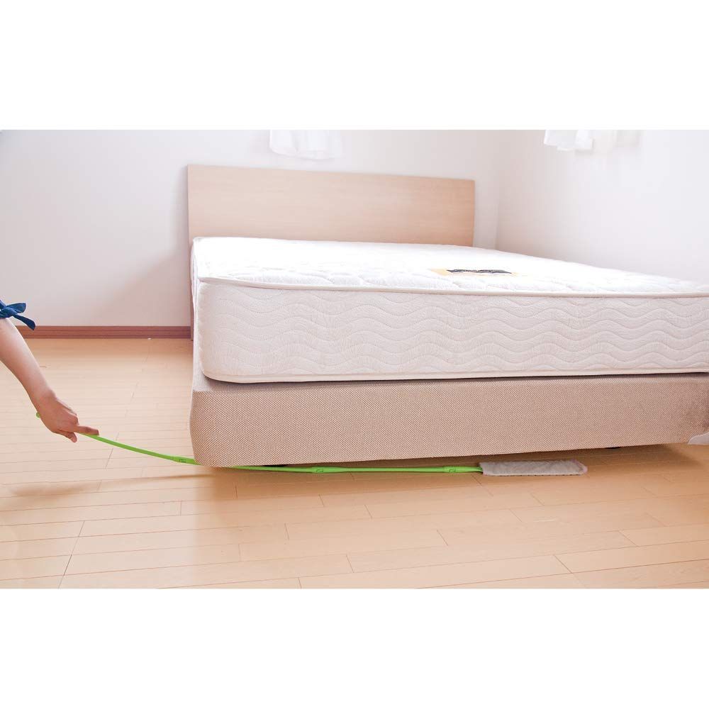 全長約139cmのしなる長い柄で、約1cmのすき間に入り込み、奥まで届く。手の入らない冷蔵庫の下、洗濯機の下、ベッドの下のおそうじに便利。各社共通の使い捨てフローリングワイパーシートを取り付けてご利用ください。