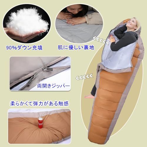 YOGOTO ダウン 寝袋 冬用 マミー型 シュラフ 600 FP 撥水 スリーピングバッグ 15℃?0℃?15℃ キャンプ アウトドア 暖かい 耐寒温度 15℃ コンパクト 車内泊 防災用 圧縮スタッフバッグ付き c 02405 a 7