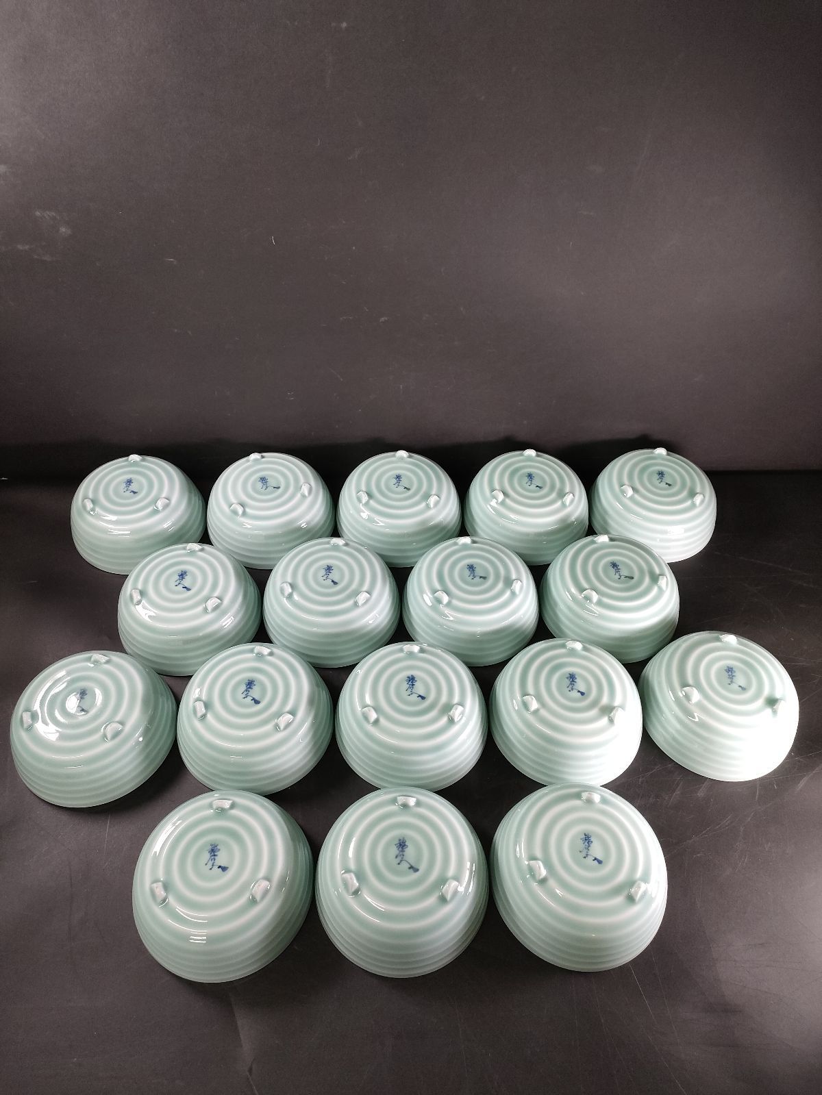 F 4 02 有田焼 錦右衛門 染付果実文青磁深鉢大17客 小鉢6客 懐石揃 大鉢 盛鉢 皿 小皿 小鉢 菓子鉢 懐石料理 懐石道具 茶器