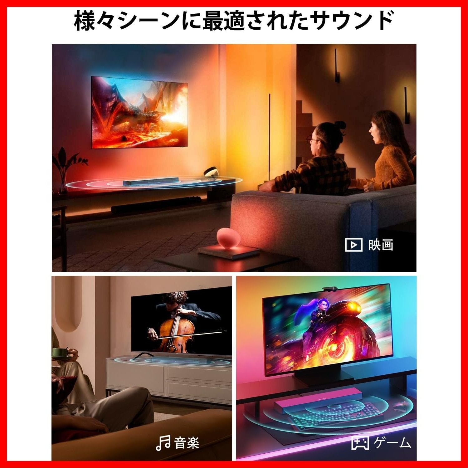 【3つのEQモード】:「映画」モードでは衝撃的なサウンド効果、「音楽」モードでは繊細な音質、「ゲーム」モードではゲーミング体験を向上させます。どんなスペースにも適用で、多様な音声体験を簡単に実現します。