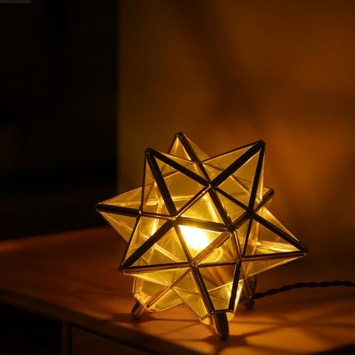 Cerdeco 幻想的に広がる星のシルエット テーブルライト スタンド照明 デスクライト 真鍮&ガラス 雰囲気たっぷりな影 インテリア照明 間接照明 スタンドライト ベッドサイドランプ 手軽に贅沢 クリアガラス 星形 TBL 43 Cp 35 dc 58 be