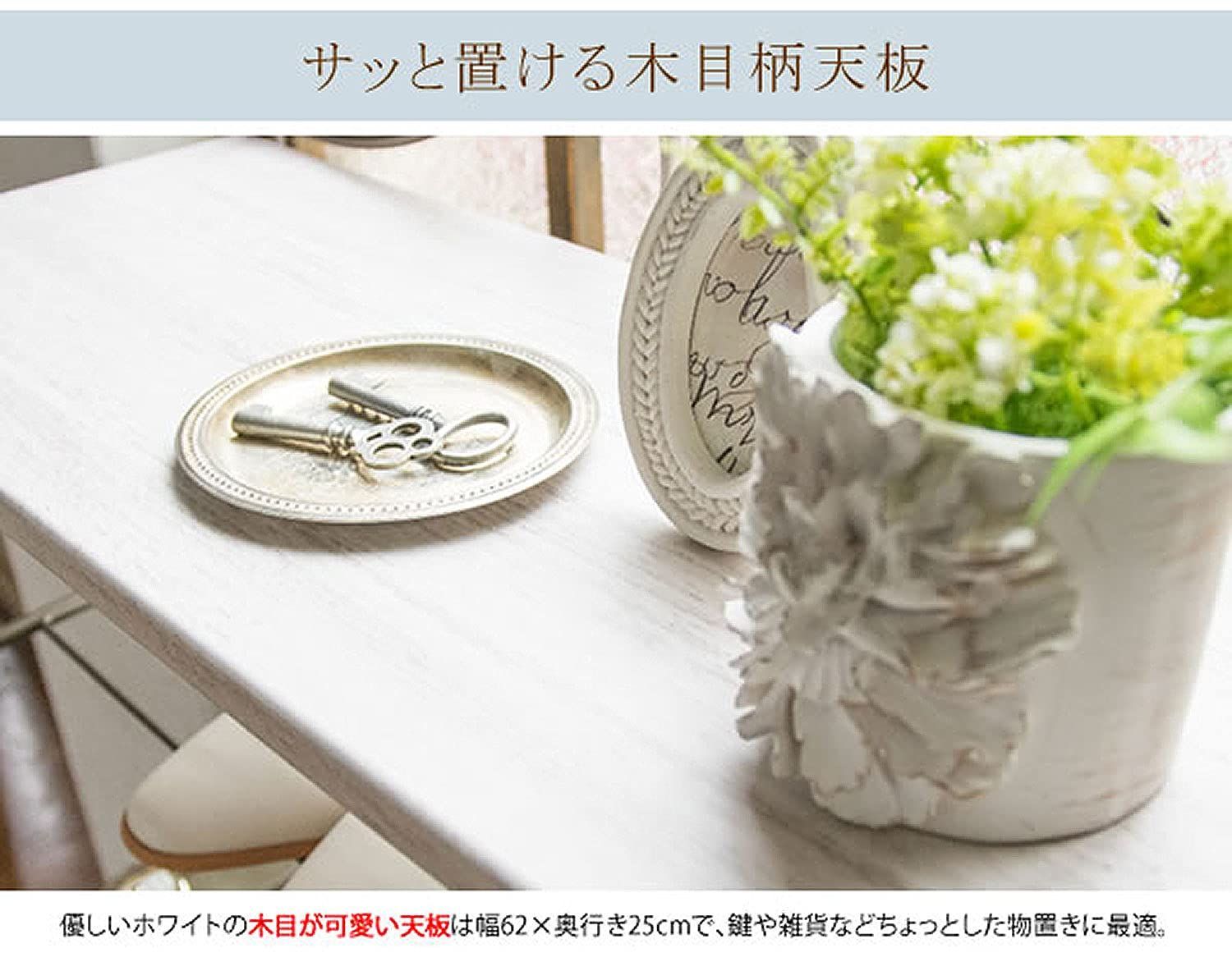曲線をあしらった装飾の洗練されたデザイン、心地よさを醸し出すアンティークゴールドが人気の『Celestia(セレスティア)』シリーズのシューズラック。シューズラックやスリッパラックなどの玄関収納を有効活用すれば、狭い玄関周りを可愛く魅せることができます。また、忙しい朝や来客時もつまずいたり探したりすることなく、快適にお過ごしいただけます。鍵などが置ける天板と跳ね上げ式でブーツも収納できる棚が4段でとっても便利。レディースシューズは最大12足収納できます。