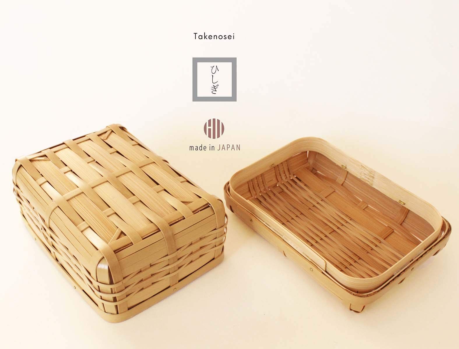 緻密に竹の本数を計算して作る「ひしぎ編み」と呼ばれる弁当箱。