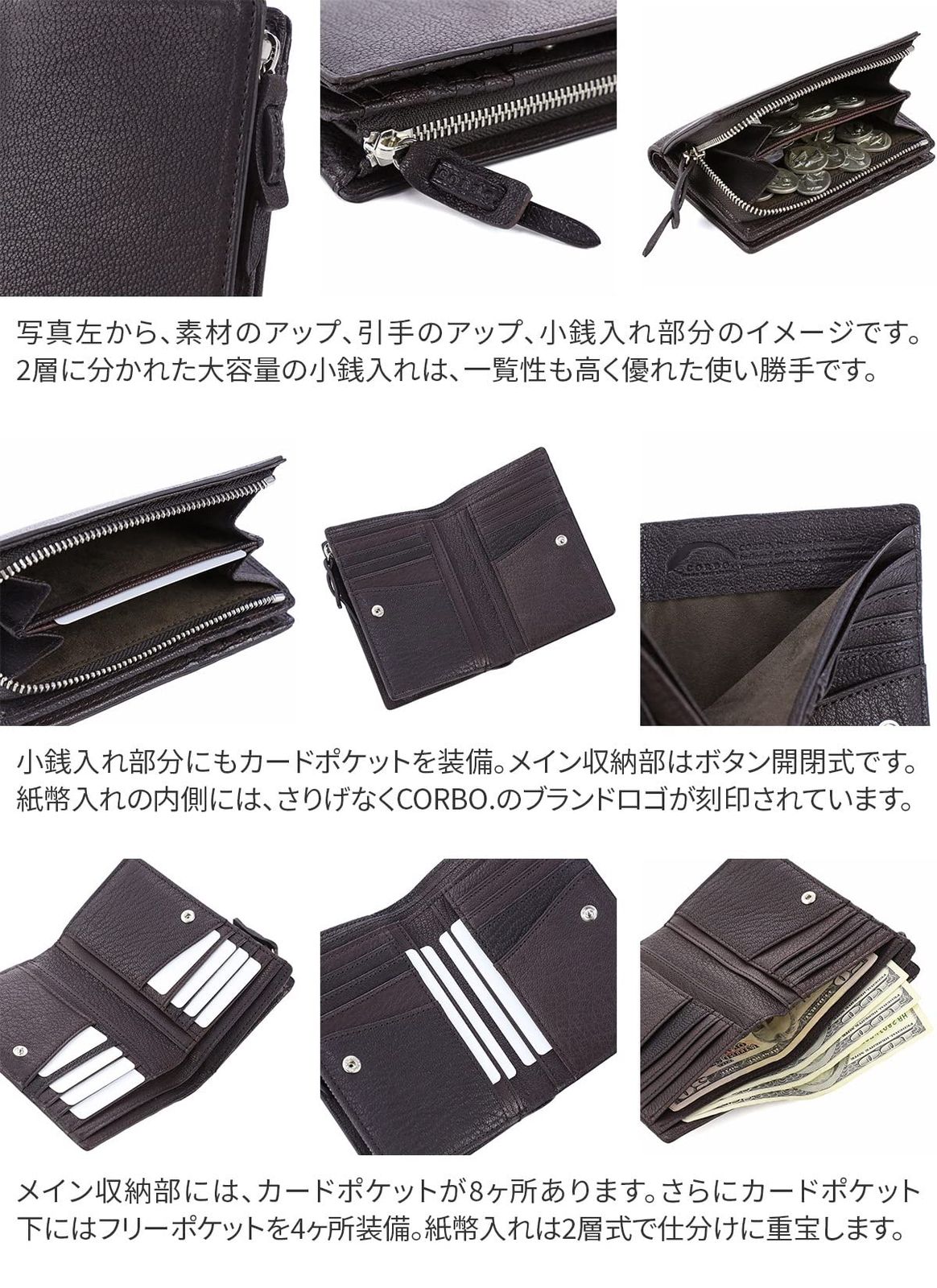 [コルボ] 二つ折り財布 L字ファスナー 本革 メンズ CO-1LJ-1303