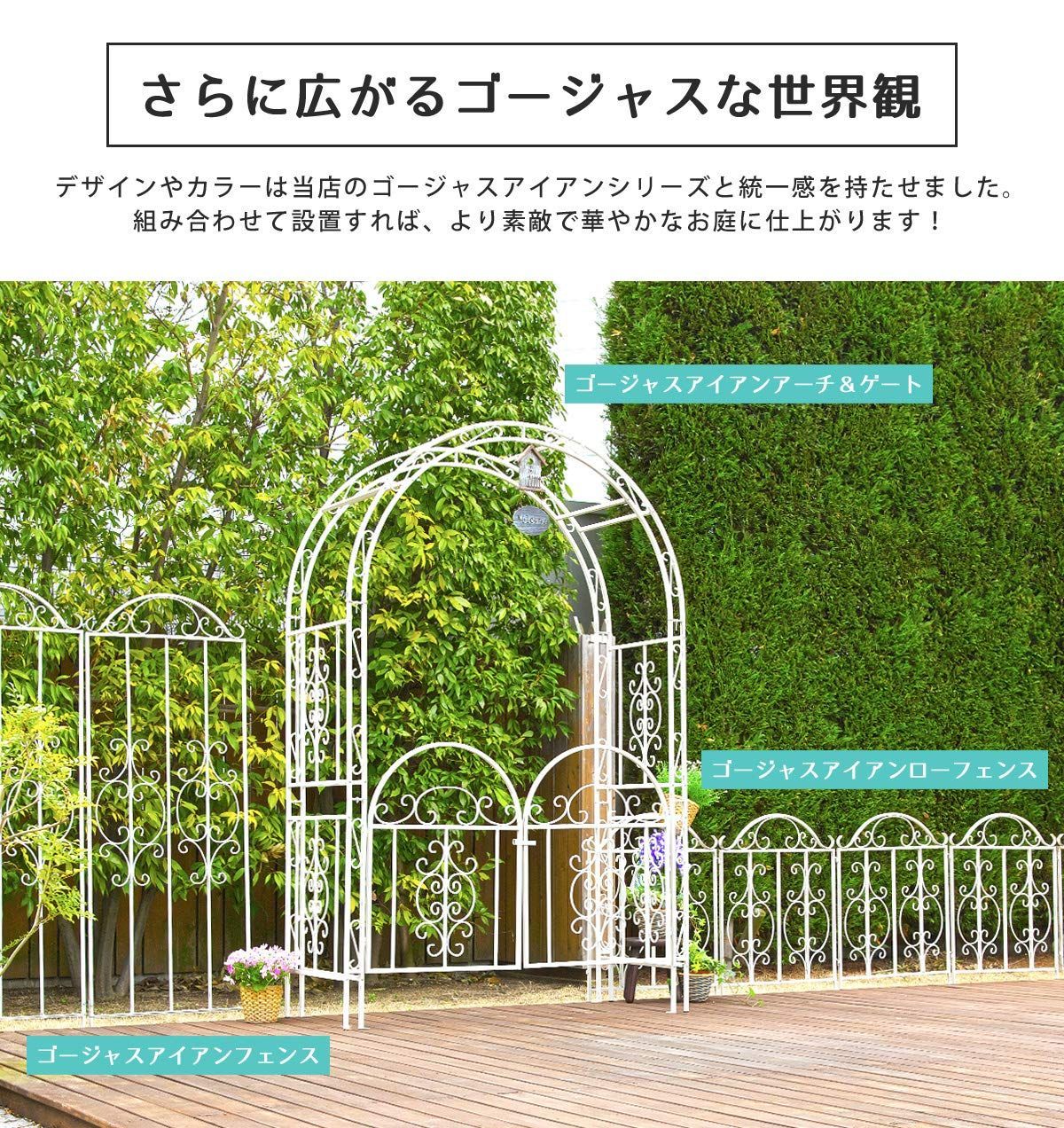 ●商品解説の都合上画像に表示されている演出用品や関連製品等は商品には含まれておりません。●製品改良の目的で外観・仕様が予告なく変更されることがあり、商品画像等と若干差異がある場合がございます。●スチール製品は素材の性質上、錆が発生する場合がございます。●早期の腐食を防止し美しくお使いいただくために、定期的なお手入れ(さび落としやさび止め塗料の塗装等)をおすすめします。●ご不明な点がございましたら、ガーデンガーデンまでお問い合わせください。