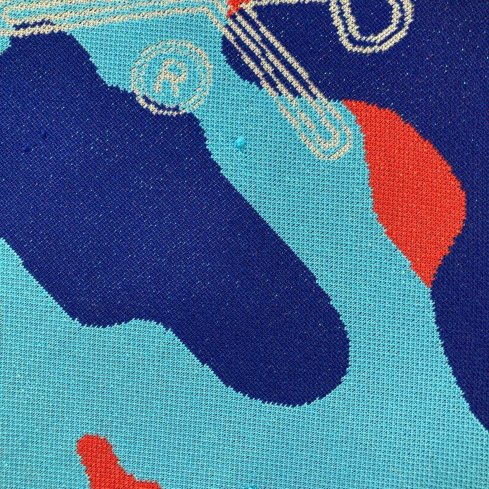 サイズ 48 MARK-LONA マークアンドロナ ハイネック 半袖Tシャツ カモフラ スカル総柄 ブルー系 ゴルフウェア メンズ ストスト
