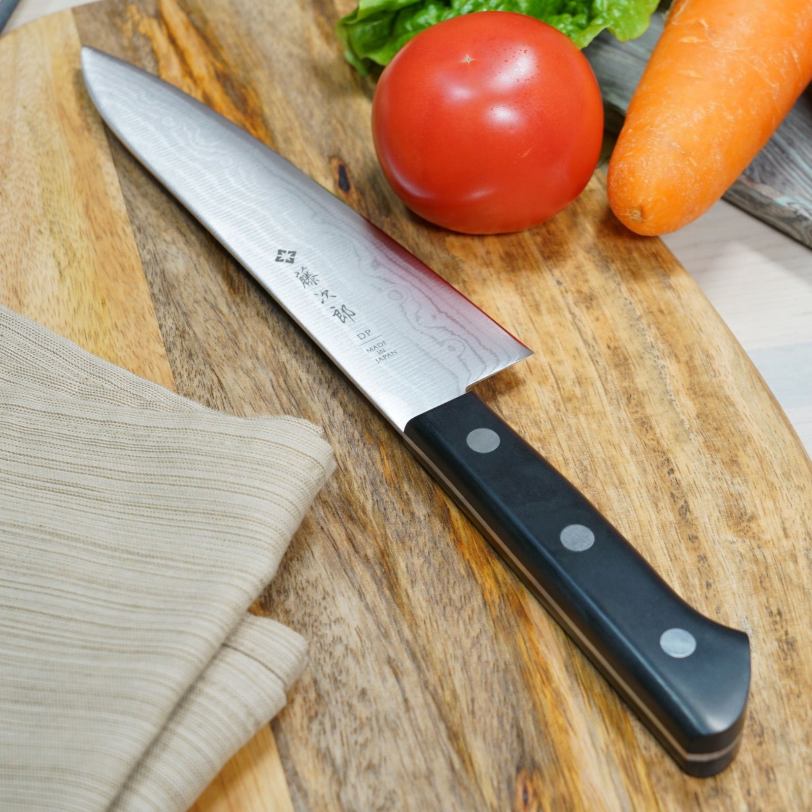 髪の毛の伸びる方向の逆向きにこの刃を上手にあてると、髪の毛が裂ける程ですから、その切れ味には驚きです。トマトもこの包丁の重みで力をかけずに綺麗な切り口で切れてしまいます。さらにトマトを半分に切って、まな板の上に置き、トマトを手で抑えずに横から水平に薄くスライス出来る程です。